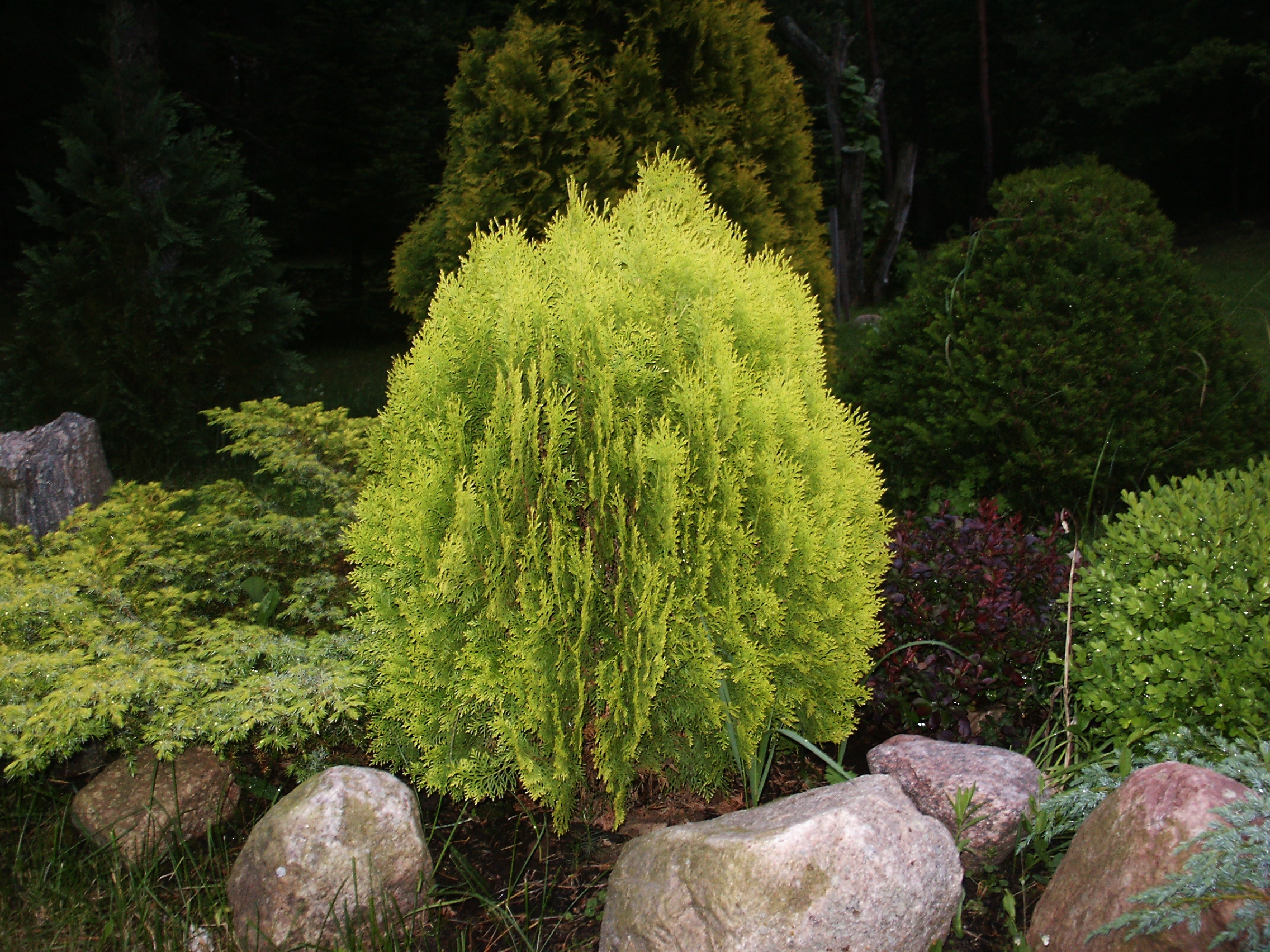 Krūmai: rododendrai, baltauogė meškytė, lanksva, forzitija – svarbiausia, kad krūmas būtų išraiškingas.