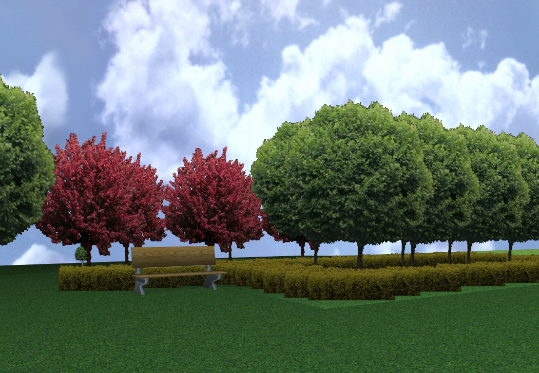 Medžiai: klevai, koloniška obelis, tujos, juodoji ir veimutinė pušys, kadagys, koloniška laja, kaštonas, svyruoklis beržas, gluosnis, sidabrinė ir kitos eglės.